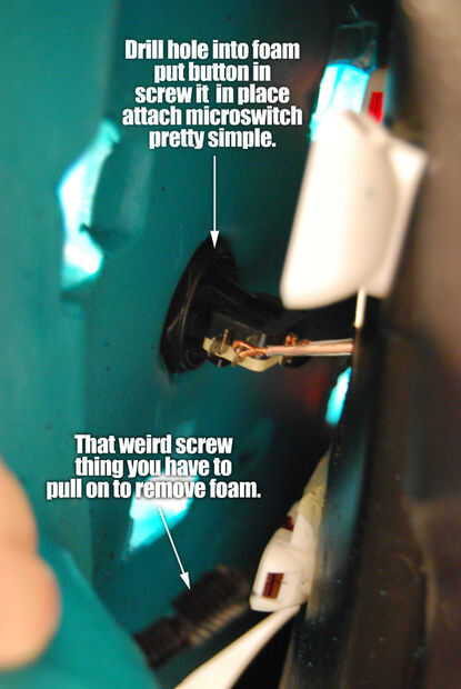 Lo primero que tienes que hacer es desanexa pedazos de la espuma de la cabeza y el torso del maniquí para poner los botones de arcade en boxeo. El maniquí tiene estas cosas extrañas tornillo de plástico negro que la espuma sobre el maniquí plástico y usted puede apalancar estas simplemente usando un destornillador. Una vez que aquellos se extraen, puede taladrar agujeros en la espuma e insertar los botones. También necesita taladrar agujeros en el plástico donde el botón pasará por permitir que el cable salga de la parte posterior.