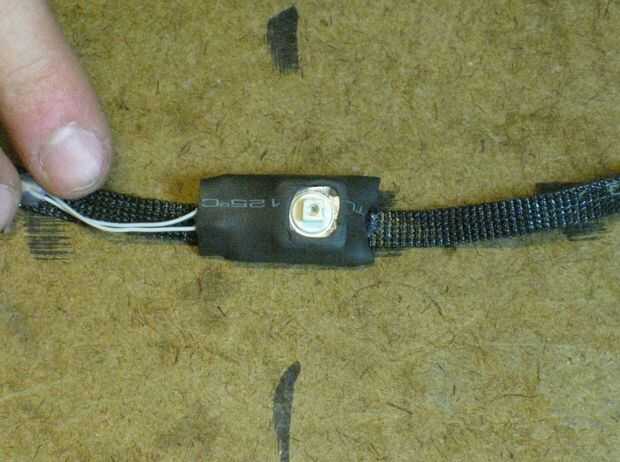 Coloque un pedazo de 1/2" termo retráctil en el Velcro por lo que recorre el tablero del botón de Palma. Reducir hacia abajo y cortar un agujero para el botón.