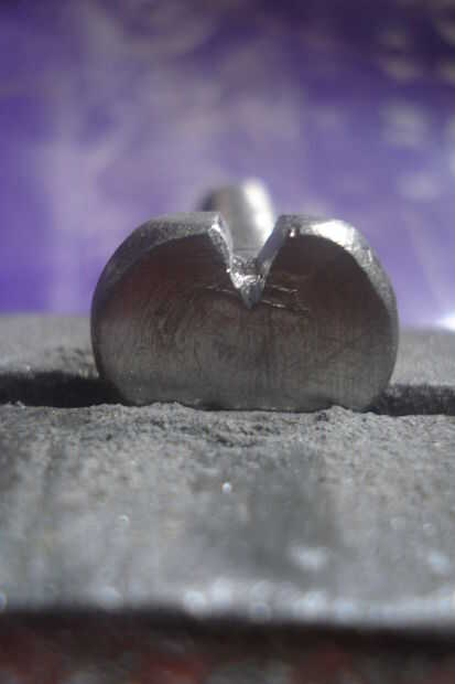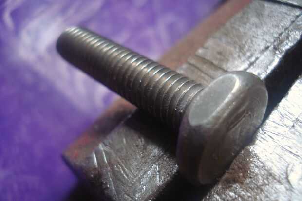 Ahora toma su perno y ponerlo en la prensa. Luego archivo una muesca en forma de v en dos de los lados de los pernos (véase cuadro 2).