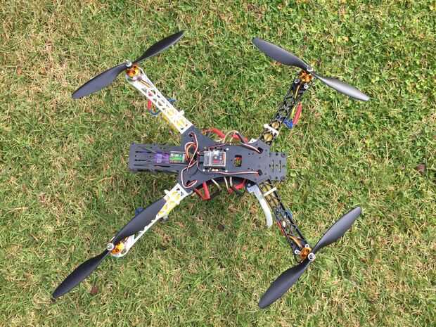 Una vez que esperamos que los motores para moverse lento, que el quad se queda en el suelo. Levante lentamente (usando el control remoto) y escuchar el sonido de los motores, ya que girar más rápido. Una vez que hay suficiente potencia de Levante el quad se levanta y esperamos el mecanismo uno mismo-equilibrio para tomar lugar y equilibrarla.