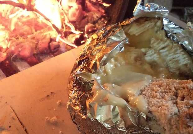 Descubrir otra vez, tomar pan y vagabundo en el volcán de queso fundido.