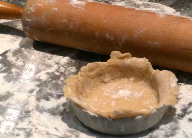 En un mezclador... poner la mantequilla junto con las dos cucharadas de azúcar y mezcla hasta que esto se parece a comida gruesa, añadir la sal y harina y mezcla hasta que se incorporen todos los ingredientes, añade en el agua... sólo un poco a la vez hasta que comience a formar una bola... no sobre mezcla, ya que esto resultará en una masa dura y difícil para rodar hacia fuera. Si la masa está pegajosa, entonces o la mantequilla no era enfriada suficiente o sobre todo mezclado... una buena opción en este momento es colocar las bolas en una bolsa y refrigerar por una hora o así. Estirar la masa sobre una superficie bien enharinada y fría preferentemente piedra o acero inoxidable, asegúrese de que la encimera y el perno de balanceo están completamente cubiertos con harina, como un parche seco hará que la masa pegue y desgarrar... poner la tarta junto con piezas no es una bonita imagen... trabajo desde el centro y voltea la masa para evitar que se pegue a la superficie. Una vez que se rueda hacia fuera, coloque un extremo del perno de balanceo en el borde exterior de la masa y enrollar hacia atrás sobre el perno y colocar directamente sobre la tartera acanalada y soltar el borde de la masa en el exterior de la bandeja y rodillo de las Naciones Unidas hasta que en el lugar, mover rápidamente antes de fuerte estriado de los bordes de la cacerola corta la masa. Me gusta dejar mis bordes altos y no estructurados pero cuidadosamente puede recortar los bordes para darles un aspecto de uniformidad... Haciendo 4" pequeñas tartas individuales, la cocción no es necesario pero con un típico 9" Tartaleta es una buena práctica pre cocer al horno durante 12 minutos con una hoja de papel sulfurizado y cerámica pesos a 350 grados.