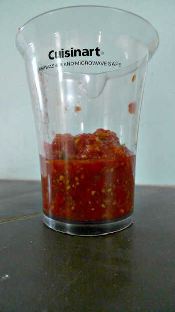 Toma unos minutos para hacer esta salsa. La mejor parte es que usted puede hacer pequeños lotes en lugar tener que ir mal en su refrigerador. También es una fracción de lo que una salsa hecha de antemano costos en el store($4.50). Todo salió de mi jardín así que es difícil estimar el costo pero si había comprado los ingredientes supongo que me habría costado unos $1.50-2.00.