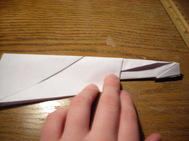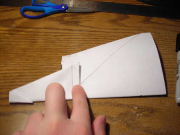3. pliegue alrededor de la mitad una pulgada de la aleta del estabilizador funcionando a lo largo del ala.