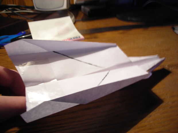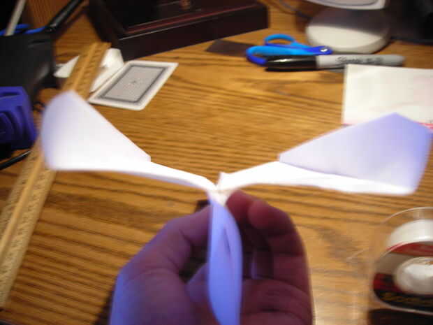 5. doblar los ings Y y Scotch cinta adhesiva en la parte posterior, ya que la parte posterior de las alas son demasiado inestable sin el apoyo extra.