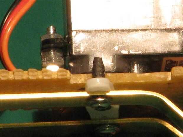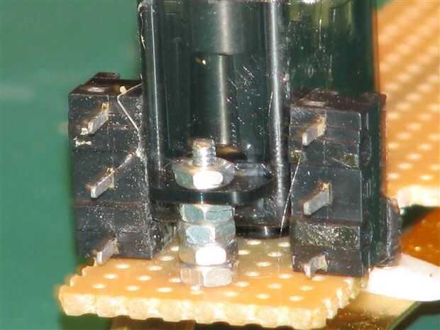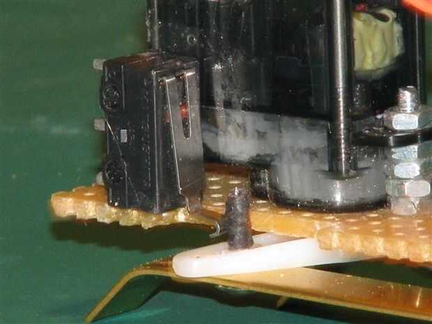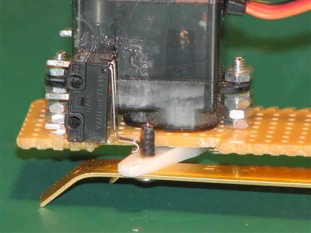 Los microinterruptores son pegados en el servo utilizando pegamento de contacto y colocados para que el tornillo largo hace clic en el micro justo antes del tope mecánico.