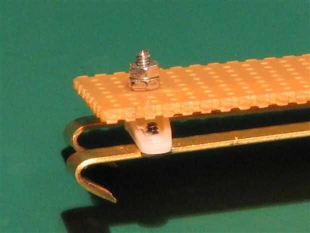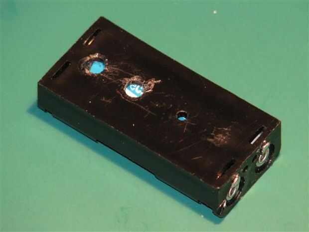 Perfore un agujero en la base del soporte de la batería para montar la parte superior del perno y a sentarse sobre el tablero. Fijar con pegamento caliente.