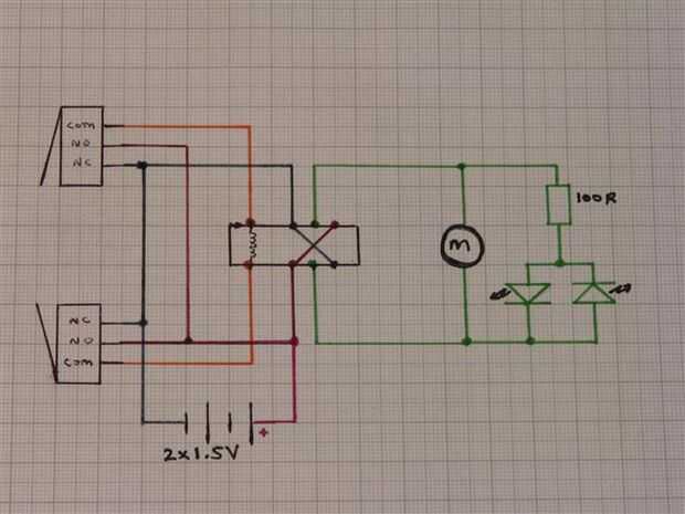 El poco inteligente de la correa eslabonada es el relé de bloqueo. A diferencia de un relé normal, una vez que se quita la energía de una bobina de relé cerrojo, permanecerá en el estado. Para voltear sobre le pulso la bobina con el contrario polaridad cambiar estado y permanecer allí hasta la próxima tapa. Es un relé con una memoria! El cableado de los contactos DPCO (doble polo cambio) invierte la polaridad del motor (por lo que invierte) en cada tapa del relé.