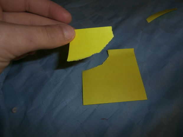 Conseguir una almohadilla adhesiva y cortar un pedazo pequeño. Es importante que desgarro de la parte superior donde está pegajosa o la broma no va a funcionar.