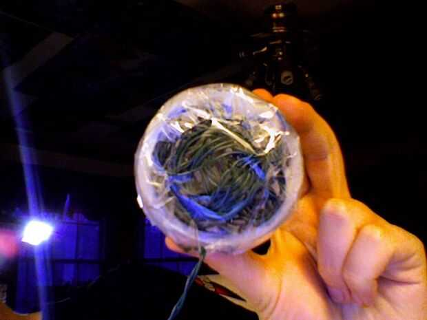 Usando la cinta, aplanar hacia fuera el alambre flojo, tratando de evitar que se cuelgan de los lados tanto como sea posible (aunque no importa si cuelgan de los lados). Guardé la cinta de superposición en la parte delantera, delante de las luces pero si la cinta es clara, puede no importa si o no cae frente a las luces.