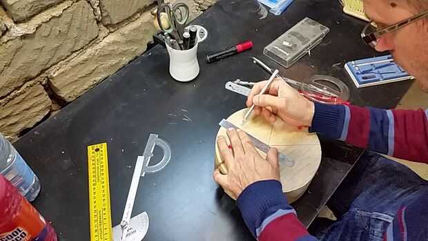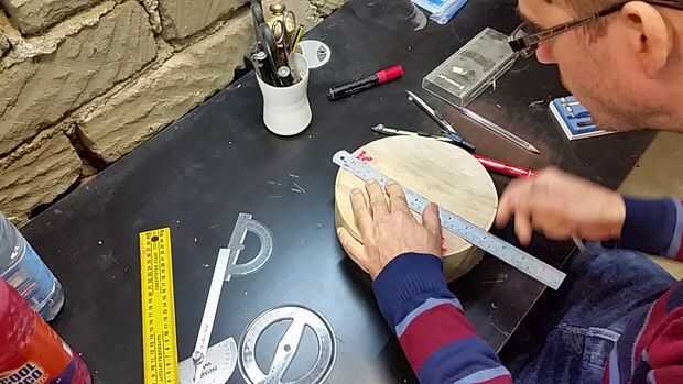 A continuación, utilizando la regla, marque una línea desde un punto de su elección a lo largo de la circunferencia de su círculo al centro.