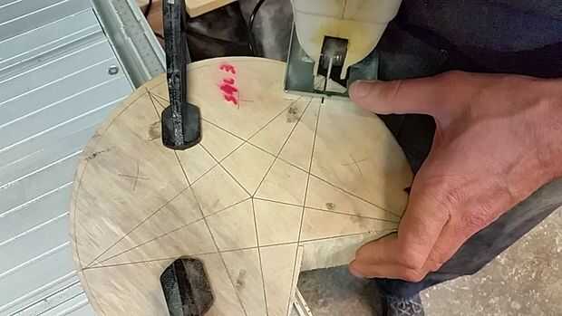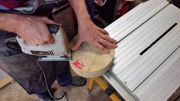 Tu estrella a la plataforma será la abrazadera utilizando (tabla de clases), alinee la sierra caladora a una de las líneas e ir en él! Corte algunas pulgadas, y cuando la arboleda que ha hecho es suficiente, usted puede terminar el corte con la sierra para metales. Cortar todo el camino hasta donde se encuentran las líneas de los brazos de estrellas, pero no más allá de él! También, es mejor errar y fuera de las líneas y arena Lave de corte dentro de las líneas, que hará que su forma no uniforme.