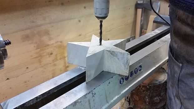 Una vez que el orificio perforado, tornillo de la estrella en el tornillo de carcoma tan ajustadamente como sea posible. Asegúrese de que al atornillar en la estrella que tienes paralelo a la cama del torno. Darle una vuelta, ver como gira!