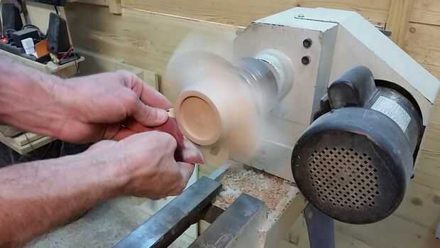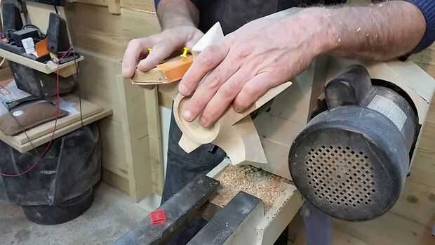 Pulir el fondo de la olla. No hay escapatoria, que no sean la base del tazón de fuente que se puede lijar en poder del torno, el resto tendrá que ser de arena, lentamente, durante mucho tiempo, hay demasiado aire entre los dedos a la arena correctamente bajo poder. Si tratas, que vas solo arena un lado de cada dedo, y distorsione la forma de la garra. Puedes ver que también he utilizado un trozo de madera con algún papel de lija que se aferraron a él con un par de tachuelas. Esto hace el lijado de superficies planas a los lados de los dedos más fácil y más precisa.