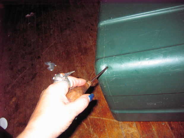 Tomar una varilla de punzón para hielo en y poke agujeros como se indica en las imágenes.