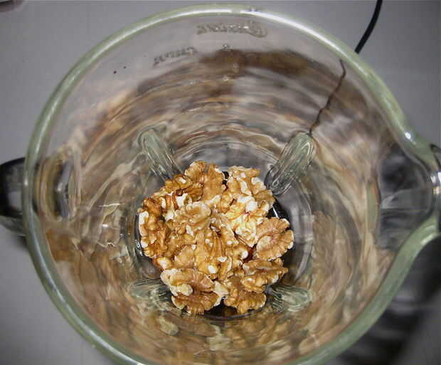 Poner las nueces, mezclada las nueces y bayas, canela y sal en la licuadora. Pulso en trozos bien. Tenga cuidado de no sobre la mezcla, o las tuercas con comienzo para formar una mantequilla.