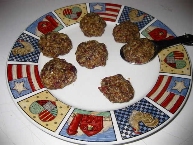 Usar una cuchara a cuchara la masa en bolas y luego usar la palma de su mano para presionar las bolas en las porciones de galletas en forma de!