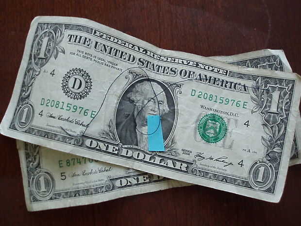 • 2 crujientes billetes de un dólar, o simplemente trozos de papel cortan a la medida de $bill.