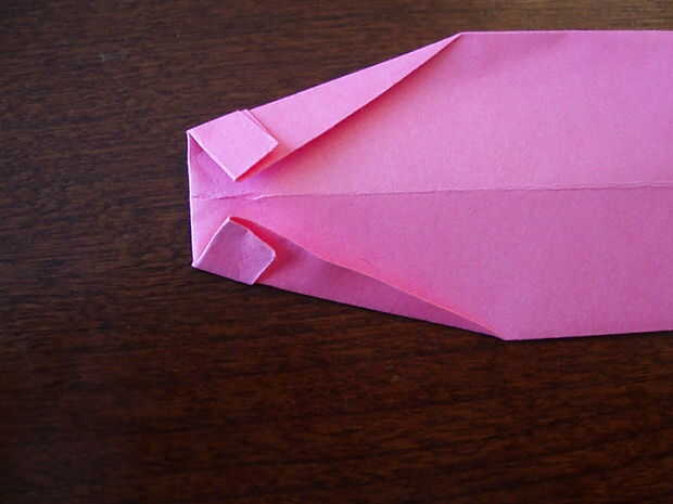 9. Doblar los bordes izquierdos y derecho para satisfacer el centro como se muestra.