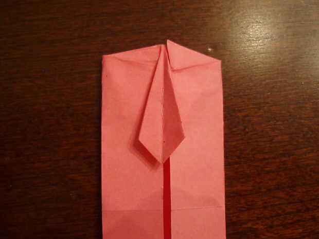 13. Gire el papel encima. Doblar la parte inferior para que haya 1/8 entre la parte inferior de la corbata y el cuello.