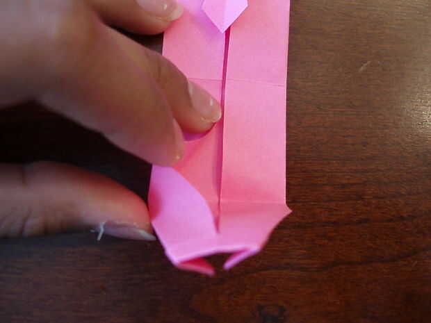 15. Voltee el papel.  Doblar todo por la mitad como se muestra.