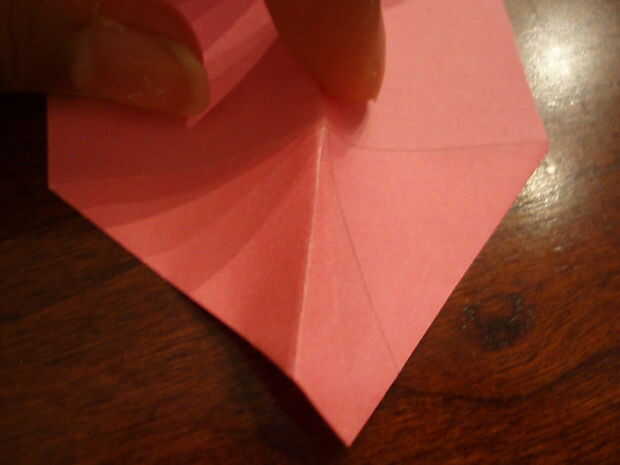 10. Se despliegan uno de los pliegues que acaba de hacer. De nuevo, esta vez haciendo las esquinas marcadas se encuentran. Esto le llevará a algunos quejarse, pero usted conseguirá eventual la derecha.