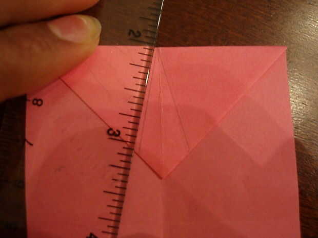 5. El triángulo se despliegan. Doble a lo largo de las líneas que usted acaba de hacer.