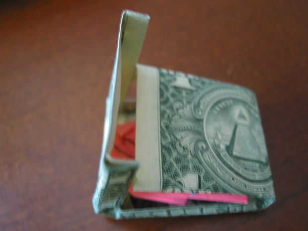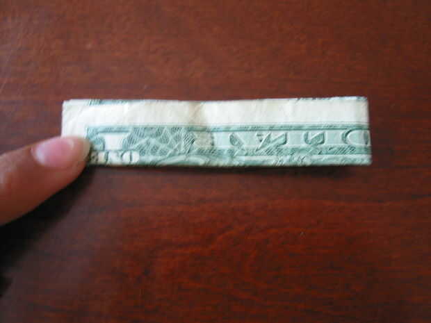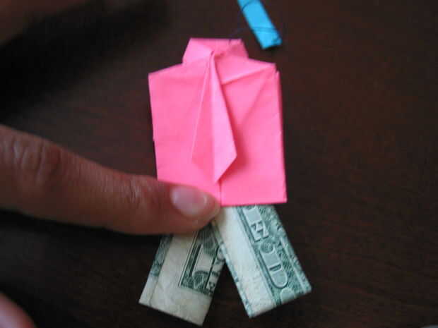 • Si usted quiere un traje completo, hay pantalones de origami. dobla un billete de un dólar en cuartos a lo largo, doblar por la mitad y doblar por la mitad otra vez en un ángulo.