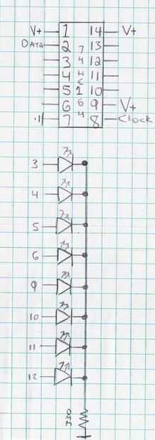 En la segunda página dijo que no se trataba de controlador, que eran dispositivos lógicos, con pequeñas cantidades de corriente capaz de pasar a través de ellos. En orden de funcionar 8 LEDs, mientras que manteniendo el circuito simple y no cocinar el registro de desplazamiento, requiere que nos limite la corriente un poco.