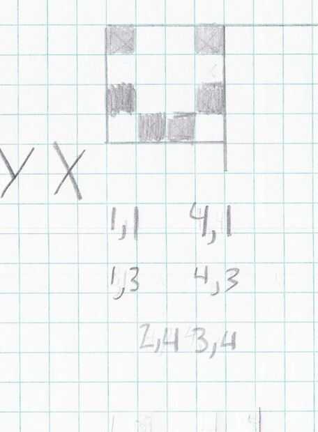 Para dibujar un cuadrado de 4 x 4 en papel cuadriculado y rellenar en los que desea aparece una imagen, luego hacer una tabla YX. A continuación verá una asignación para un símil, así como mejor uno puede hacer en 4 x 4 "píxeles"