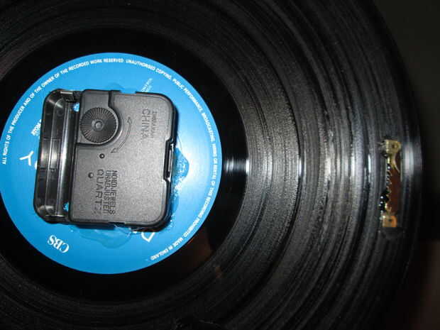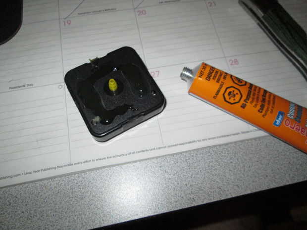 Una vez firmemente han pegado por el mecanismo del reloj, vas a querer pegar también la suspensión de la imagen en la parte posterior del registro para que el reloj puede colgar nivel.