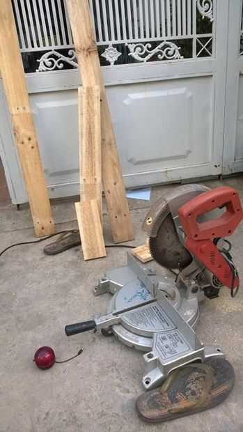 Sierra para cortar ingletes es una herramienta muy útil para este trabajo porque necesitamos los grados de esquina para los lados y las azoteas. Si tienes una sierra de mesa o una sierra circular que puede hacer la esquina grados corte, eso está bien también.