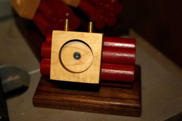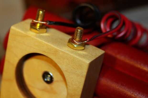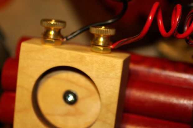 Poner una gota de pegamento de CA en los agujeros perforados en los palillos de dinamita e Inserte el extremo sin pelar del alambre en los orificios. Mantener durante 30 segundos hasta que cuaje y dejar reposar 5 minutos permitir pegar correctamente.