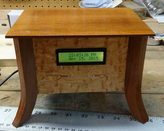El reloj puede obtener energía de un cable USB, pilas 2 D o una verruga de la pared (entrada 7-12 volts 500mA). Funcionará durante unos 2-3 meses en las células D por lo no es la fuente de alimentación óptima. Puede cambiar el color de la retroiluminación de la LCD.