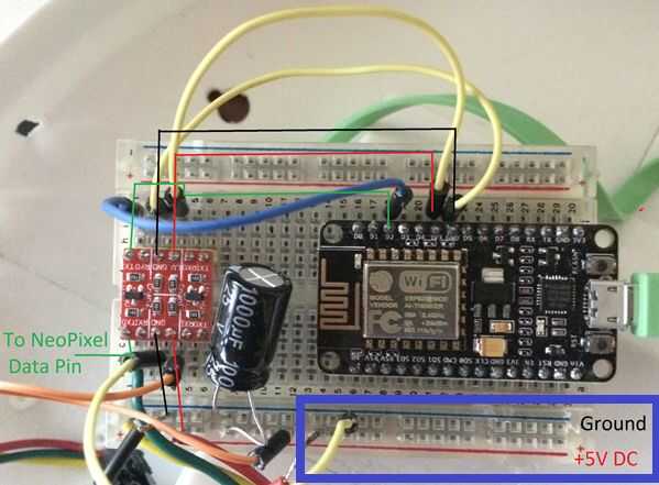Tornillo en el enchufe DC en el agujero en el centro y conecte los cables a la placa en el lado de 5V:
