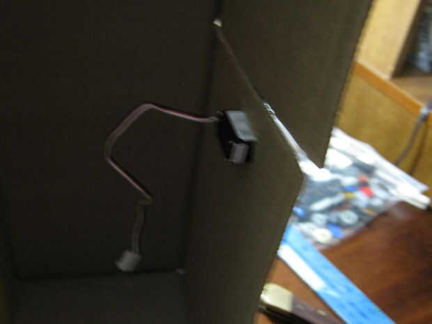 Hacer una caja y poner todos los componentes en él. Ponga el Servo en el lado y el pegamento en un taco.