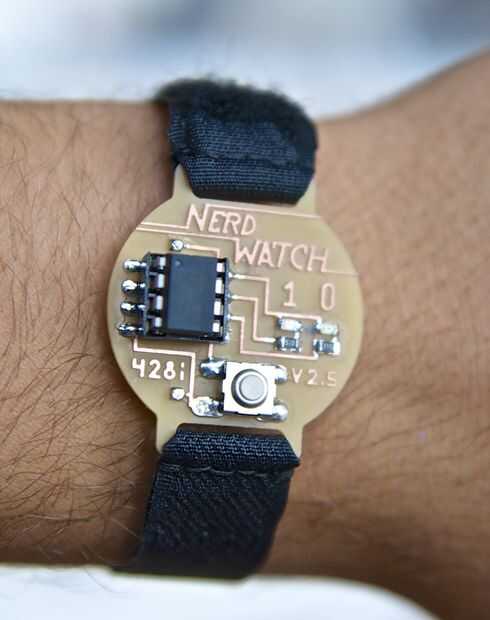 El Nerd reloj muestra la hora en binario cuando se pulsa el botón. El reloj muestra la hora y minutos por destellar dos LEDs en secuencia para representar dos números binarios de 4 bits (en formato big-endian ). Esta es una gran Descripción de cómo leer números binarios.