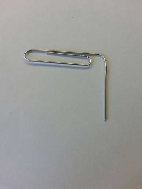 Tome el extremo del alambre que está fuera del clip y lo doble por lo que es de 90° con el resto de la clip