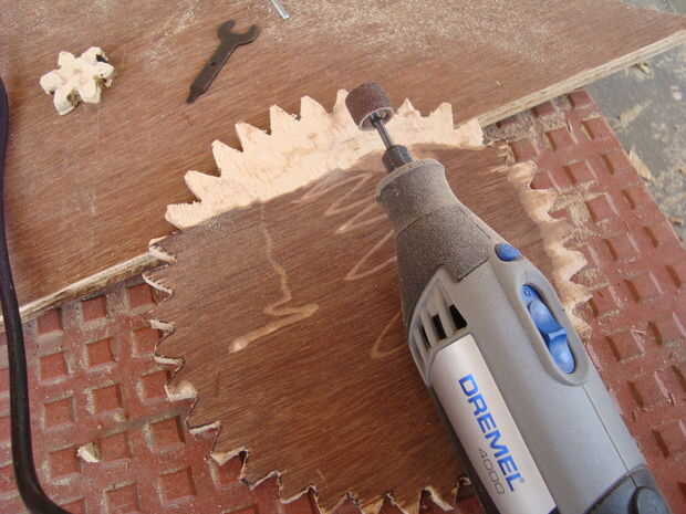 Prefiero siempre la parte superior marrón de mi madera quitada. Tan fuertemente lijar la superficie de los engranajes pero dejé la Junta como es.