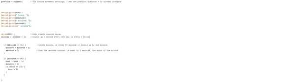 Arduino también comprueba distancia cada segundo, lo que significa que el Arduino compara la distancia previamente medida a la actual medida de distancia. Si estas dos medidas difieren en más de una cantidad fija (a 15 cm en este código), una alarma suena (sentido figurado), y el Arduino lo considera ser movimiento (¡ Hurra!). Este será el detonante para el resto del código.