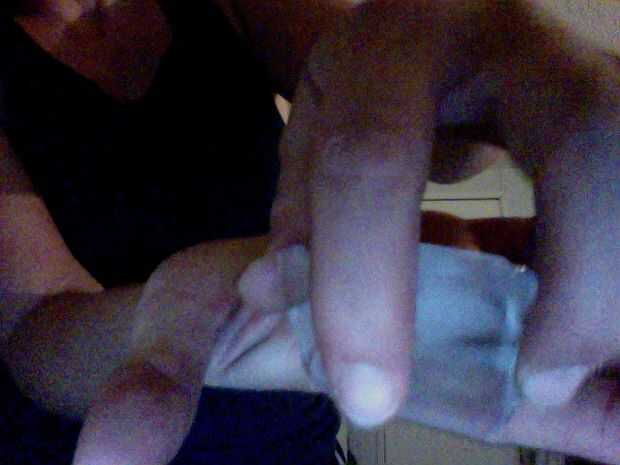 Frote el área entre los fore dedo y el pulgar con el cubo de hielo