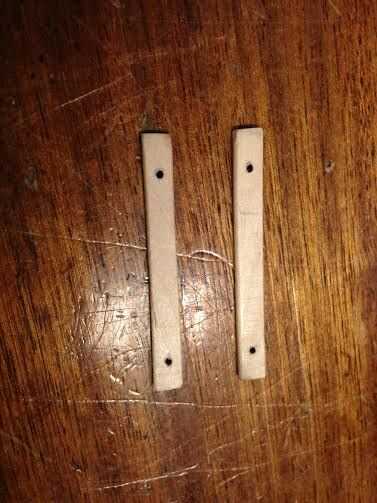 luego hacer 2 pequeños agujeros con un taladro de mano pequeñas en las piezas de madera de 2,1 pulgadas.