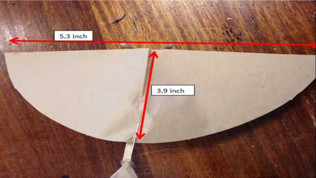 Ahora sólo debe cortar las alas para que estén 5,3 pulgadas (13,5 cm) ancho y 3,9 pulgadas (10 cm) largo (como veis en la foto).