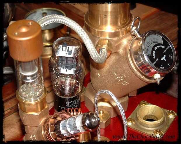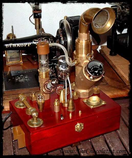 No hay nada más especial que emprenden una expedición en estilo Steampunk y dormir en las carpas hacia fuera en el bosque. Y cuando te sientas juntos por luz de las velas y una fogata puede quieres escuchar algunas canciones de Steampunk. Es por ello que construí el Steampunk Audiophone. Es un único Reproductor MP3 que consume poca energía - por lo que es ideal para viajes de campo.