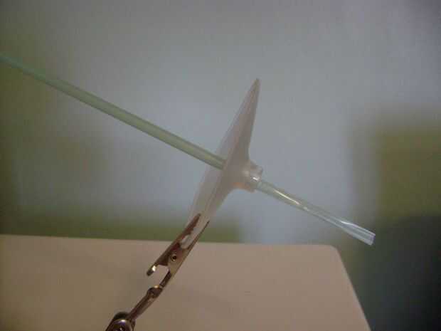 A continuación, pase la pajilla por el orificio hasta la parte flexible. El codo flexible le permite inclinar el paraguas a un ángulo de jaunty.