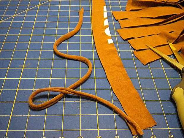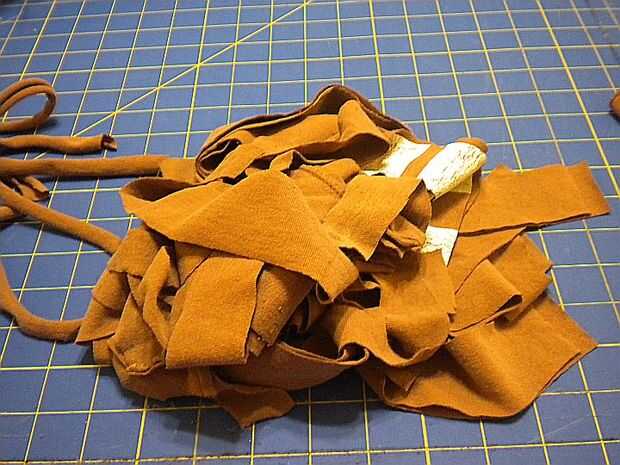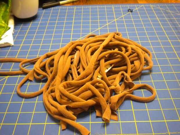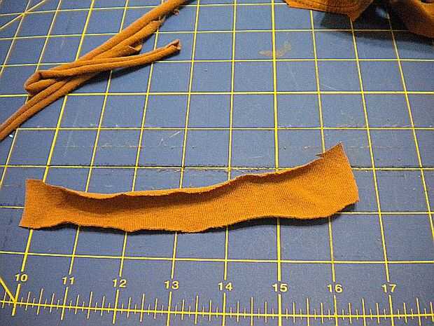 Tomar ahora cada una de esas tiras de camiseta por los extremos y tire!
