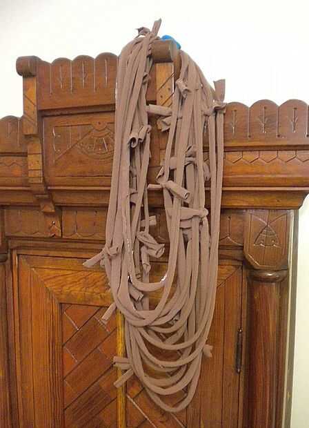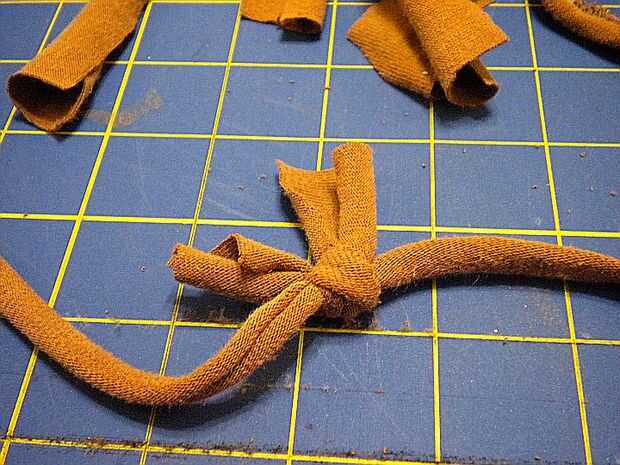 Ahora tienes un lazo gigante de hilo de camiseta anudada.
