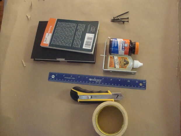 2) algunos viejos libros de tapa dura que no te importa destruir y pegar, suficientes para cubrir el soporte.