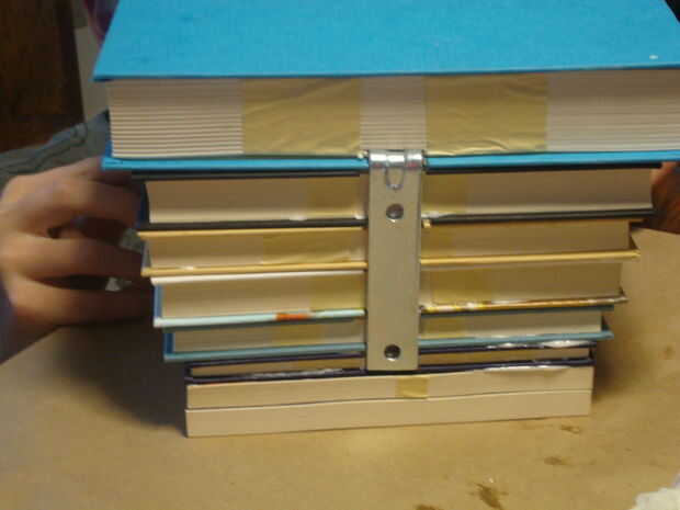 Cuando pegue el libro superior, pegamento sólo la parte exterior de la cubierta. No pegar las páginas o se puede poner encima de la estantería.