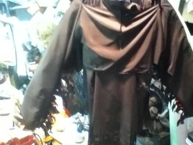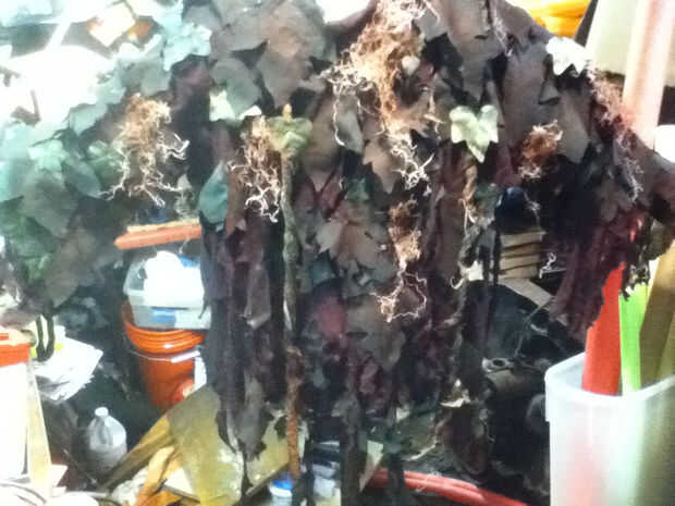 Había añadido un montón de hiedra plástico y hojas de vid y poner capas de tiras de tela en los pantalones.